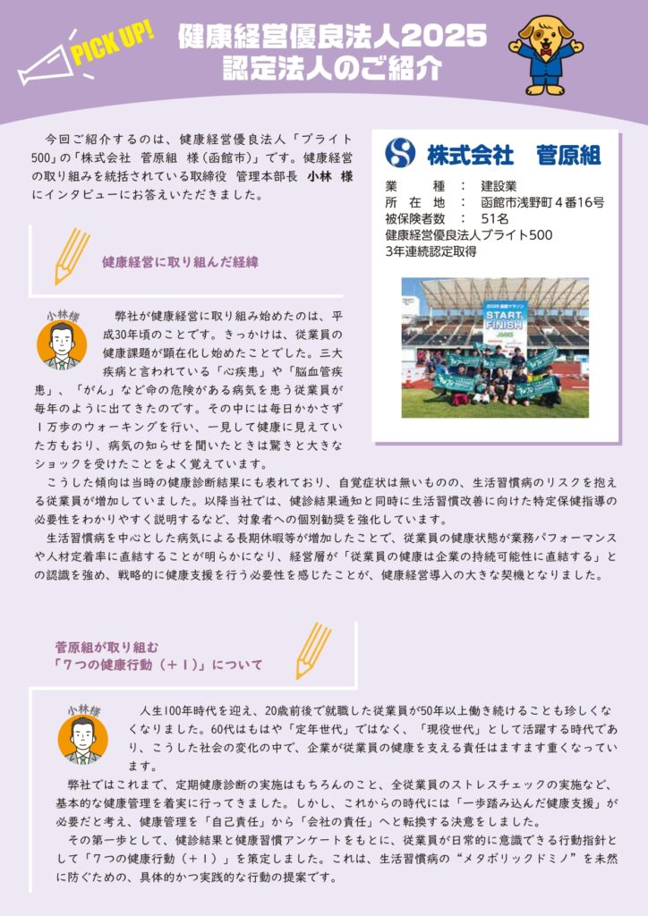 「ステップアップ健康宣言」第16号(令和7年11月号)に、当社の健康経営の取り組みを掲載していただきました。